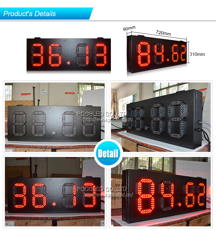 | Digit Design: | 7 segments modules are sealed with glue,reach IP67 waterproof grade,with dust shade that make leds work normally all the time. | ||||||