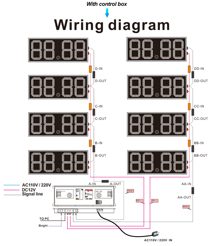 | Digit Design: | 7 segments modules are sealed with glue,reach IP67 waterproof grade,with dust shade that make leds work normally all the time. | ||||||