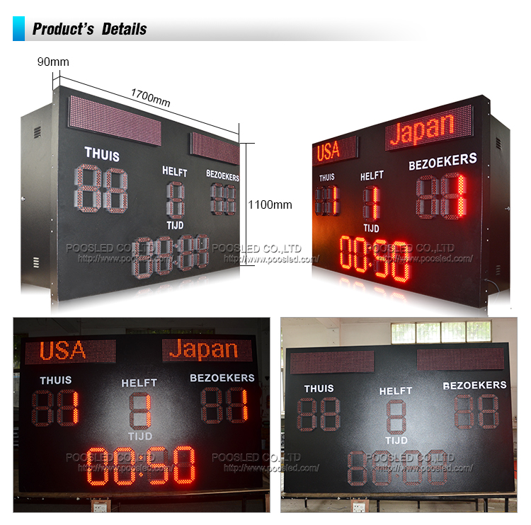 专业批发10英寸户外单人红色LED足球记分牌带文字显示屏